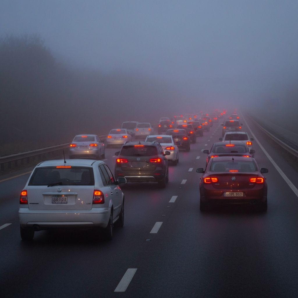 - Weather factors - Fog, ice, or rain reducing visibility and traction